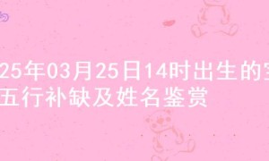 在 2025 年 04 月 04 日 14 时,一个新生命降临人间。这个特别时刻出生的宝宝,带着独特的命运和希望。起名是给予宝宝的第一份珍贵礼物,它将伴随孩子一生。一个好的名字不仅...